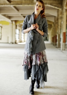- Another distinctive feature of the style is layering. A competently composed combination of several elements of the top, often effectively underlined with a stylish scarf, does not make the figure heavier, but makes it more “airy” and attractive.