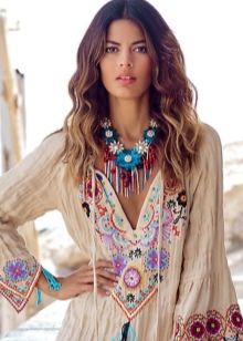 - At least one element with a floral or ethnic print should be present in the combination of clothes. It is these components that determine the bohemian nature of the created onion and make it an object of the Bohoshik style.