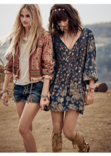 The destination is famous for its small bright chaos. It includes clothes made with an abundance of ethnicity or a variety of floral prints. Often, images are emphasized with short-brimmed hats or large quantities of rattlesnake jewelry. The presence of complex or colorful patterns in combination with elements of grunge style is welcome.