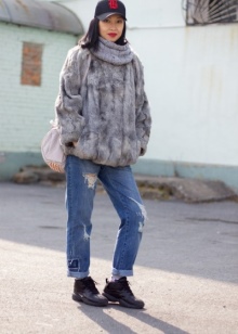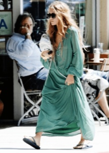 For example, an extremely effective option would be a straight-line maxi dress with a floral print. Thanks to the thin material, it will not create a three-dimensional effect. A stylish addition in this case will be elements of the grunge style - a scarlet leather jacket in combination with a bag and shoes in rich red. A wide-brimmed hat and a massive ethnic necklace are used as the main decoration. Great new hippie look for a walk around the city.