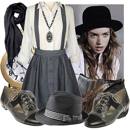 Vintage often requires that one of the items of clothing be made in the same color scheme and, in addition, complemented by a wide-brimmed hat or a massive reticule of the old design.