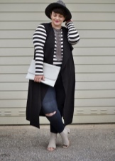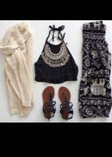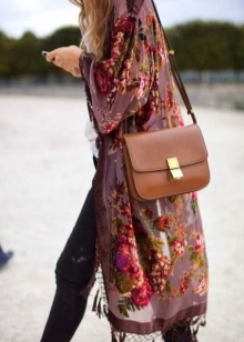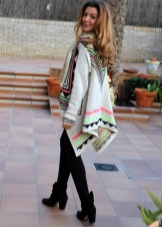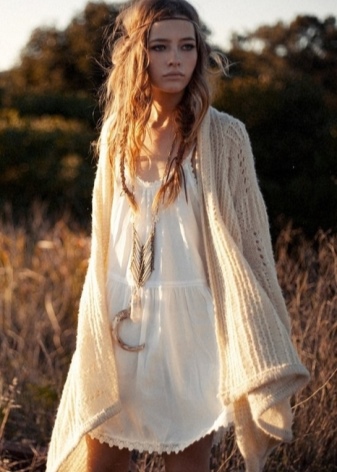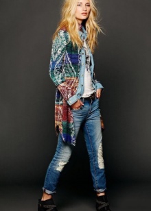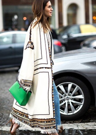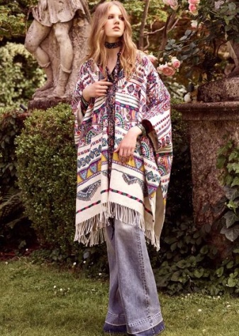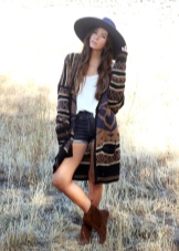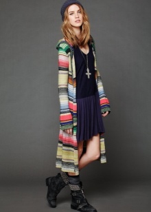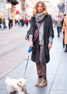 Outerwear (poncho, capes) are often similar to rectangular wraps. In the off-season, a down jacket or patchwork jacket looks interesting and spectacular. For cold days, you can buy a knitted cardigan in your wardrobe. The best choice is a knitted model made of thick yarn.