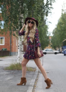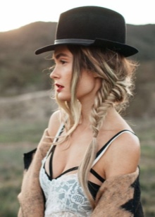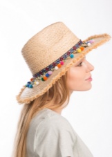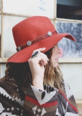Hats to the style must be selected taking into account the features of the face and physique. The bohemian style does not limit the style of the headgear: it can be any and, as a rule, has a bright accent. The decor element can be a contrasting satin ribbon, a vintage brooch, a flower, a strip of genuine leather or a braided cord.