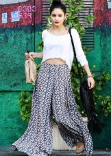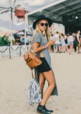 - The image can be given airiness by picking up a plain shirt on thin straps to a long skirt. In this case, you can leave the sandals, and a straw hat with wide brim is perfect as an accessory.