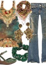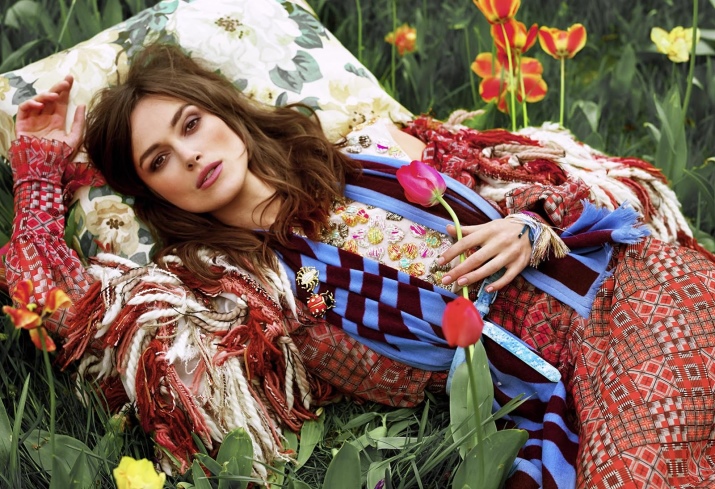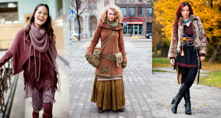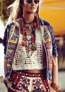 At the heart of the style there are natural shades and a variety of accessories. It can be all kinds of bracelets, earrings, pendants, glasses, beads, scarves, bandages, etc.