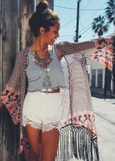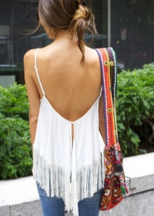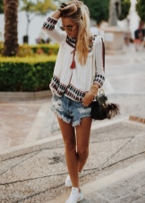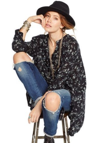 T-shirts and shirts in boho can be very diverse, depending on the desired effect. They can be tender, romantic, with ruffles, frills, knitted decor and lace. If you want grunge, you can buy a top with a shabby texture of the material.