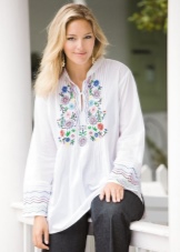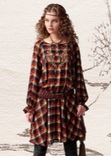 - Tops with embroidery and rumpled texture of the material are considered a rarity of ordinary wardrobe and are not for everyone.But the loose knitted tunic of the trapezoid silhouette, made in calm shades, will become an indispensable attribute of the boho-chic style. To create an urban-style outfit, just put on this tunic with leggings tucked into high boots. And, of course, complete the bow with a small scarf or a small metal necklace.