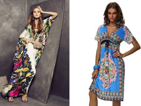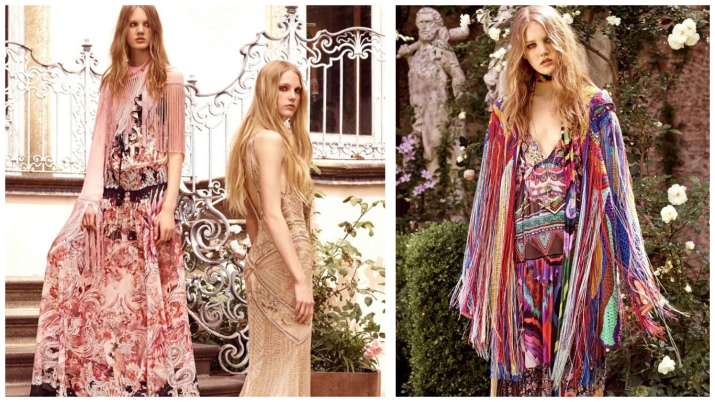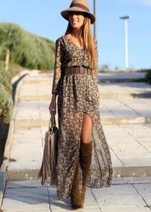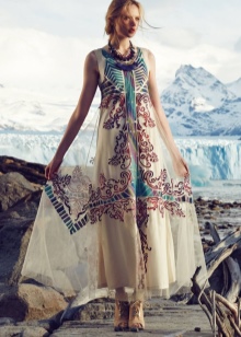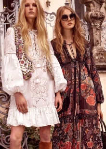 Boho-style dresses are characterized by soft flowing textures of textiles. Fluttering in the wind, such dresses seem light and airy. Most often they are made of silk or chiffon with a graphic or floral print. Ethnic colors are no less interesting.