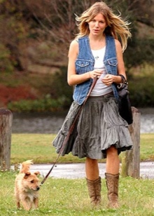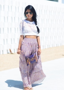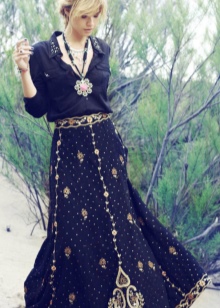 - In such a wardrobe there should always be a maxi skirt that sits well on the figure. If among the things there is a top with a print in the style of a graphic, a denim vest and sandals - the image will be perfect. These attributes go well with such a skirt, forming a bohemian style.