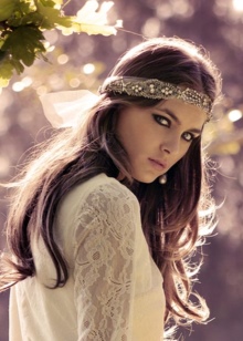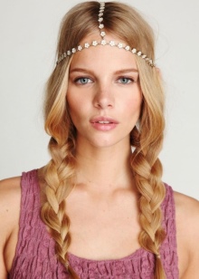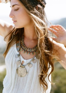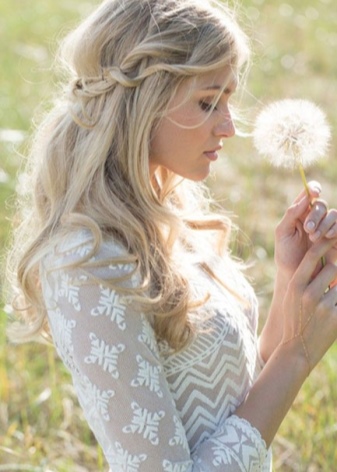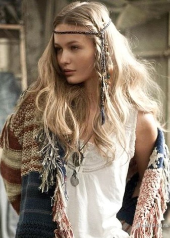 Ideal hairstyle for a bohemian style are curly curls. Different braids can be elements of decoration. They can be small or framing the head in the form of a wreath.