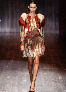 Almost always onions are layered. A light dress can be combined with a knitted cardigan or a fur cape. The texture of the material can be rough, mint, artificially aged.
