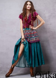 Bohemian dresses and skirts are amazingly delicate. More often they are long and colorful, with catchy ornaments or bright floral prints. In this wardrobe, there are a lot of things with a high waistline, flared skirts, voluminous things and knitwear. The clothes often have fringe, lace, large decor, embroidery. The texture of the materials can be very diverse. Skirts are often multi-layered.