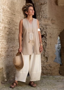 However, among a large selection of such clothes, one must observe a measure so as not to overload the outfit. You can not use everything at once, so as not to destroy the harmony of the ensemble. When choosing clothes, one should not forget about shoes: they should be on low heels or wedges. Such options are most relevant for overweight women and balance the proportions of the outfit.