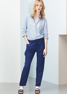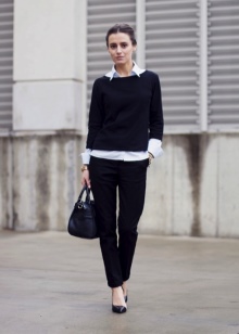 Shirts that can be tucked in or worn over jeans are especially popular. It is recommended to maintain a certain color scheme - a black or dark blue bottom and a light top.