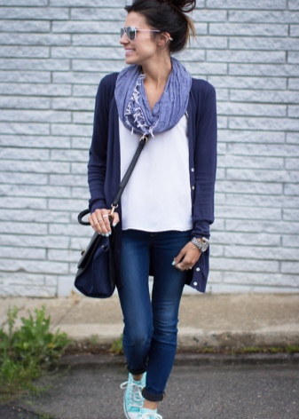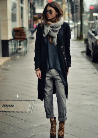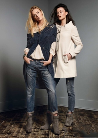 In cold autumn and winter, the wardrobe casual includes knitted sweaters, warm woolen dresses, oversized coats. In combination with jeans, a sweatshirt also looks interesting. For cold weather, the basic winter wardrobe must include dark jeans, several light tops, a knitted sweater and outerwear - a coat, cardigan or jacket. It is recommended to choose a contrasting color palette, for example, a beige top and a dark blue bottom.