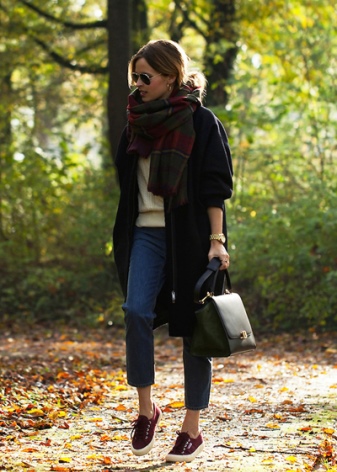 Shoes should be on a low run, you can buy loafers, slip-on shoes, interesting sneakers, sneakers, ballet shoes, which street fashion allows you to combine with jeans and dresses. Choose bright accessories - large multi-colored beads, original scarves, unusual earrings and rings - this year, designers are focusing on accessories.