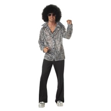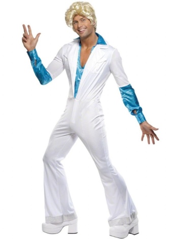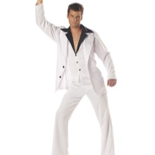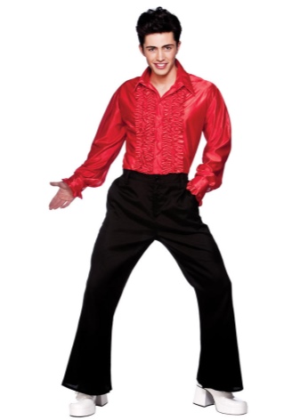 Men are much easier. They can complement their classic costume with a bright shirt or colored turtleneck and sparkle in the disco style. A cult white suit and black shirt are classics of disco style.