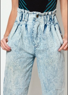 In the wardrobe of every mod and every fashionista there were always jeans, mostly flared, the waist of which was understated. Both men and women wore them. Jeans were decorated, often with their own hands, printed patterns, embroidery with the same sequins, beads. The so-called banana pants were fashionable. Of course, the name of so many interesting details of the wardrobe gave an external resemblance to a banana.