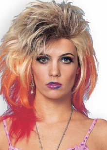 Disco style is characterized by acidic, and even bright colors in almost everything - in clothes, in makeup, and even in hairstyles. On the crest of a fashionable wave were light green, yellow, pink, orange, silver, metallic colors. Hair sprays with a short-term coloring effect, artificial multi-colored locks of hair, hairpins and elastic bands - and all this was full of all shades of the rainbow spectrum.