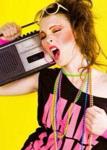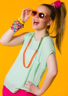 For this style, not only clothing that attracts attention is used, but also accessories with the same task. Basically, girls and girls were fond of accessories, of course. Mostly they wore a large number of bracelets and all at once, a lot of chains, large earrings, either colored or imitating gold, irregularly shaped glasses and colored glasses.