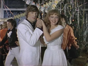 He was so fond of such a fashionable bow that they began to use it in films that have absolutely nothing to do with the disco style. Recall the troubadour from the "Bremen Town Musicians", who in one of the episodes appears in a white suit with a light flare on his pants. Or the hero of Alexander Abdullov - Ivan Pukhov - from the film "Wizards", which appeared at the ball in the same way in a white suit and black shirt. And it cannot be said that this image did not suit them. However, even such classics were very actively and shamelessly diluted with paints and bright accessories.