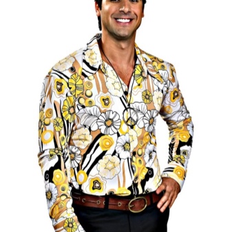 It is not surprising that it was the fashionable image of Travolta that became one of the main role models. The most classic disco style for men is a white suit with knee-high flared trousers, a dark shirt, high-heeled shoes. Just like Travolta and his hero. Often the shirt was replaced with various colored tight-fitting turtlenecks from thin knitwear.