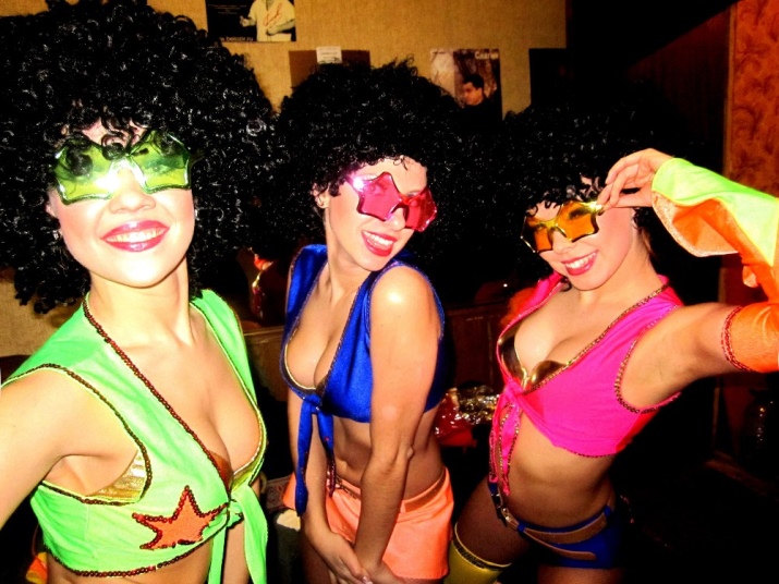 Of course, in the XXI century it is difficult to repeat the disco style as it was then. It is important that such colorful clothes correspond to the place and time, because if we are talking about a theme party, there are no taboos or restrictions for you.