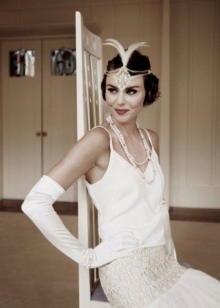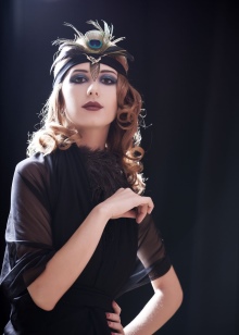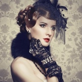 Another important feature of this style is the presence of nontrivial hats. It can be headbands with voils, large floral arrangements or the notorious models with feathers of different sizes.