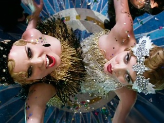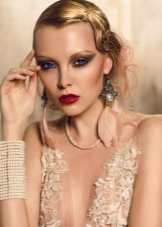 Pay particular attention to spectacular makeup. It should be expressive and rich. Lips should be painted with red lipstick, and eyes should be decorated with dark shadows. Give the skin a paler shade to highlight the eyebrows and visually make them darker.