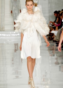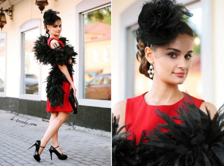 Do not pick up options with corsets. Such elements will look old-fashioned. Such decorative details as ostrich feathers that are attached to a hoop or brooch look very feminine and harmonious in the outfit.
