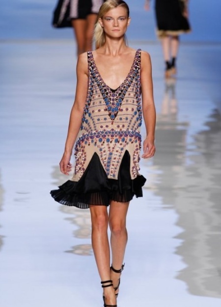 Outfits complemented by sewn stones and shiny sequins will look very bright and luxurious. Such elements are able to give the image a special chic and shine.