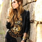 The basic things for a woman who chose glam rock as her style are leather goods. Biker jackets with aggressive spiked decor or more restrained regular leathers best represent rock. Here you can also include trousers and skirts, as well as dresses. In addition to leather, denim of dark colors with decor in the form of torn parts and pins is relevant. To complete the classic "glam rock" outfit, you only need a top or a T-shirt with bold prints.