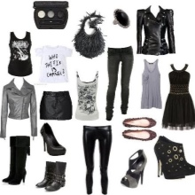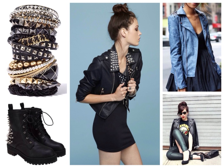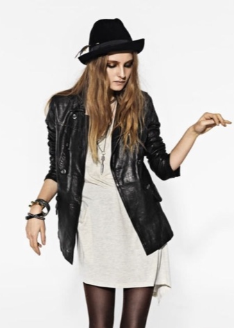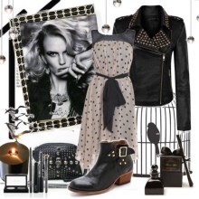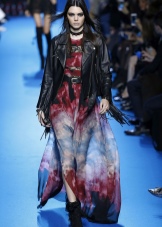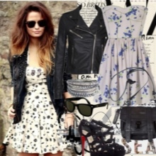 - An evening combination can be made with a long flying dress with cutouts and lace inserts, a leather jacket with a fringe and suede boots. Bright smokey ice, a spiked collar and bracelets on the hands complete the outfit.