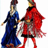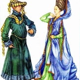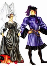 The “barbaric” fashion of the Middle Ages had several options - each class had its own trends and preferences. Their attraction to elongated proportions and silhouettes united them. In the trend were shoes with long noses (sometimes up to half a meter), pointed hats, a thin waist tightly laced with lacing, teeth along the edges of clothes and long trains. The higher the position of the lady, the longer the train. The fashion trend was drapery in the abdomen.