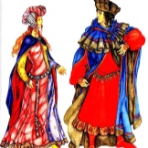 The upper dresses were represented by semicircular or round cloaks, fastened on the chest with a massive buckle.