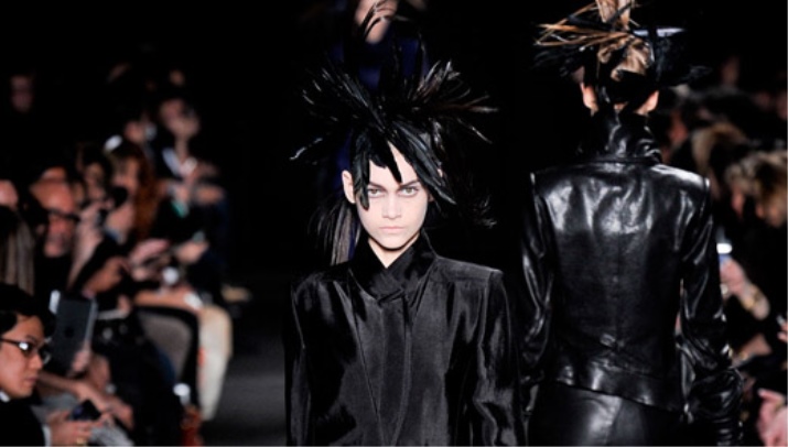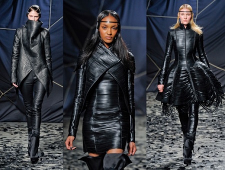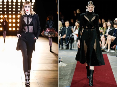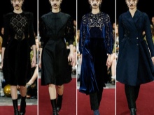 Silk, velvet, vinyl, mesh leather, denim, complemented by organza, brocade, taffeta, lurex are used for outfits.