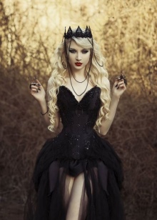 An integral and important part of the image is the hairstyle. U ready it, as a rule, straight raven-colored hair (less often it is red or ashen). The romantic direction allows curls and lush hairstyles.