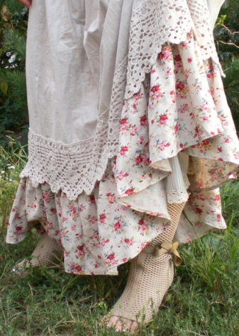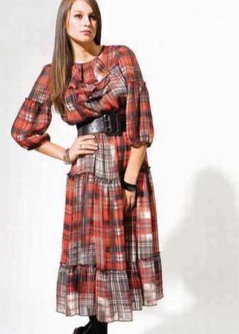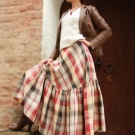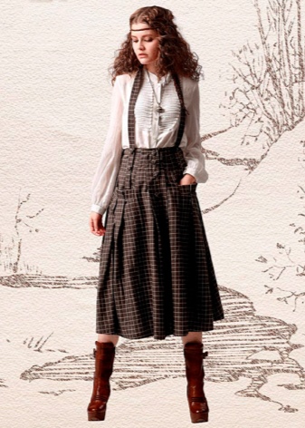 - long checkered skirts with lots of pleats, draperies and ruffles;