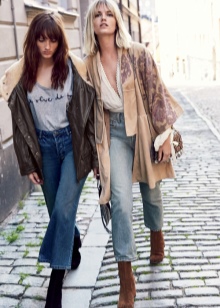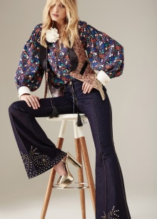 If we talk about jeans, then the most suitable are blue and bright blue options with a wide cut. An interesting solution would be models that have small patches or small holes with metal grommets. Also will be relevant: