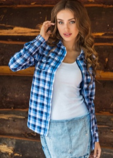 You can complement the country style with a checkered flannel shirt, which will have rounded edges and long sleeves. If such a woman’s shirt is not to her liking, then she can be replaced with a regular denim. Such decisions may also be relevant: