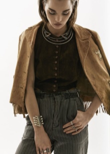 In a style that is somewhere similar to the street, you can also find elements of traditional Indian costumes. They usually use elements such as leather, fringe, ethnic ornaments, beading, poncho, various talismans, moccasins.