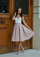- The length of any skirt or dress is below the knees. At the same time, it can be both tight and pleated.