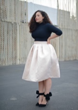 Chubby girls should pay attention to models of skirts made of thin and flying fabrics. It can be a half-sun style skirt with delicate frill or multi-layered. The models from more dense materials with a smell, as well as straight strict skirts will also look good on a magnificent figure.
