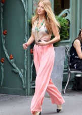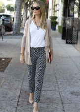 Stylists highly recommend buying thin, comfortable and at the same time spectacular flared trousers with a length just below the middle of the lower leg. They will look incredibly impressive in combination with beige simple pumps. Also in this case, the option of narrowed trousers at a high waist is not excluded.
