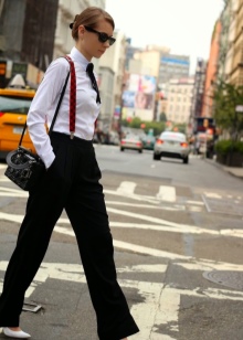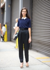 In the case of a business woman, it all depends on the dress code. If it is strict, it is better to give preference to straight strict trousers, and if it is absent, then you can try to combine a beautiful bow with wide pants made of light fabric.