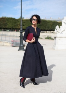 Dresses are an integral part of this trend. As a rule, they should be made in neutral colors or a solid dark shade. For solemn or official occasions, a combination in two colors is allowed - bright and bed.