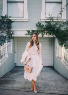 Modern adaptation includes successful combinations of things in bed shades with bright elements of noble tones. The difficulty lies in the sense of measure and the presence of exquisite taste of the owner. However, with the help of the advice of stylists, any girl can correctly choose the necessary elements of the wardrobe in order to make the most successful bow, depending on her preferences and figure.