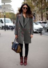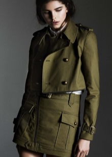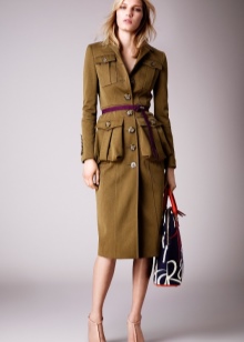 - On women of fashion of all ages, militarized coats of green and beige shades look solid. They can have both a straight and fitted cut. The style of the military corresponds to things with buttons along the entire length of the clothes. Beautiful and feminine outfits can be complemented with flirty ladies hats in color.