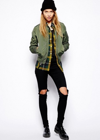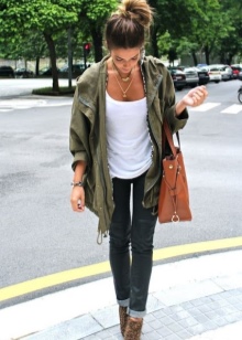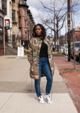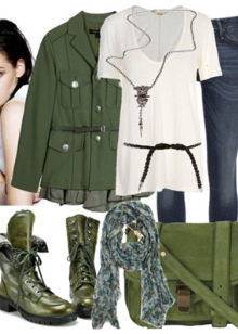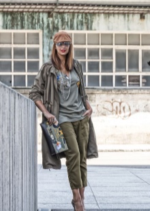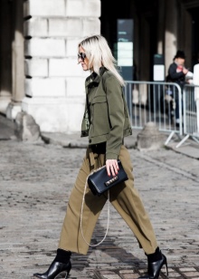 Today on the shelves you can find completely different options for clothing in a military style, so creating a beautiful image is easy. You just need to responsibly approach the selection of harmonious elements of the outfit.