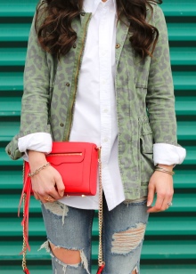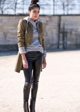 The youth style of military is perfectly combined with other fashionable trends. It can be complemented by vintage details, leopard print elements, contrast stitching, zippers, carabiners, stripes and even luxurious fur details.
